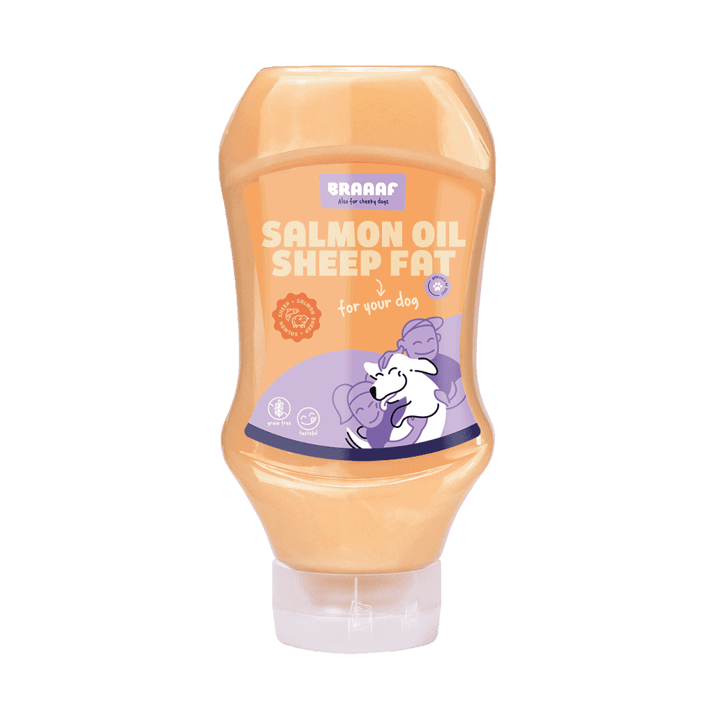 Aanvullend natuurlijk diervoeder voor honden en katten in 2 smakelijke varianten. Dit is de superlekkere zalmolie met schapenvet versie! Komt in een handige knijpflacon.