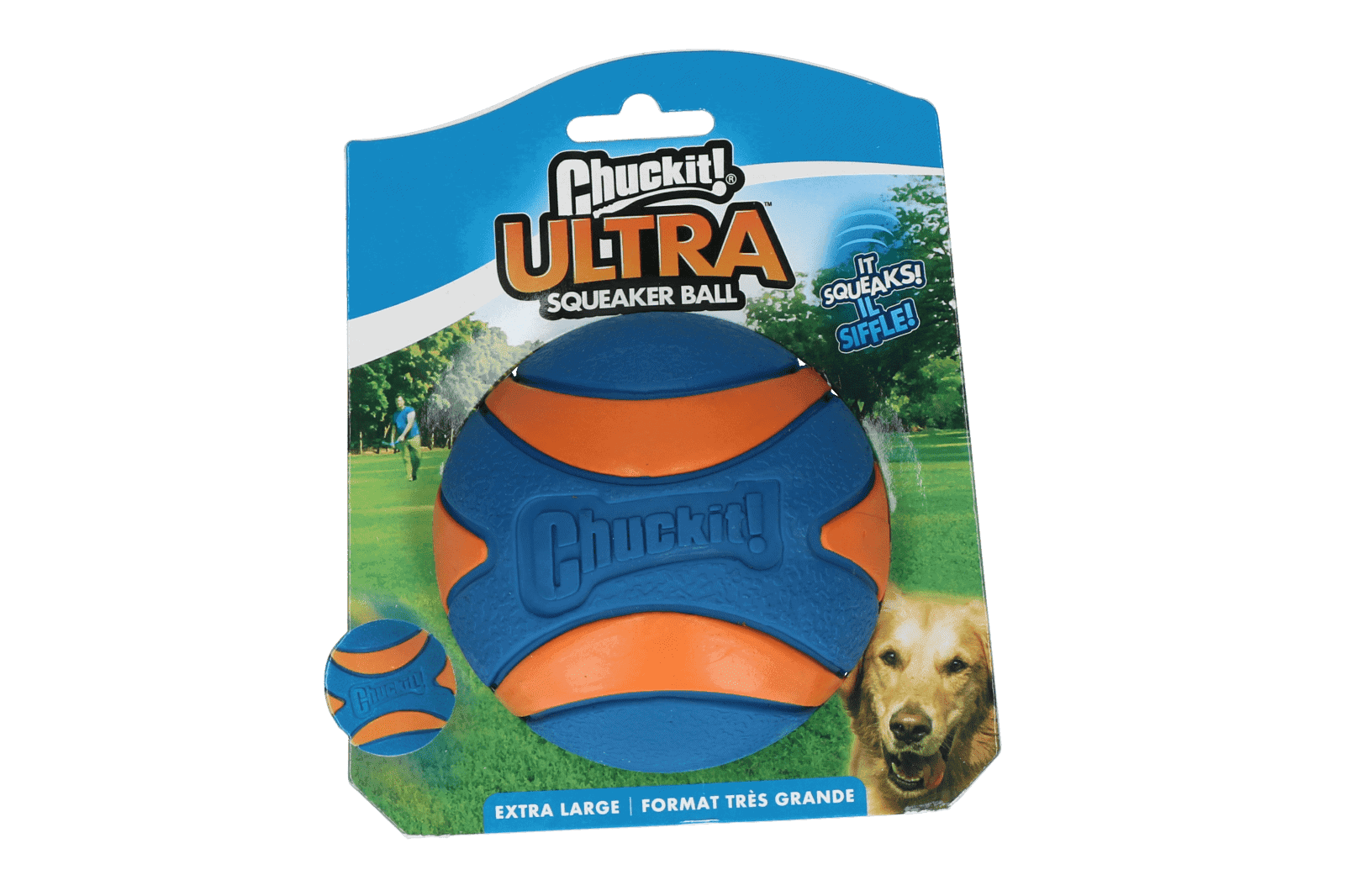 De Chuckit! Ultra Squeaker Ball combineert duurzaam rubber – voor een hoge stuiter – en hoge pieper voor optimaal speelplezier. Uw hond kan de bal gemakkelijk in de bek nemen, dankzij het gestructureerde oppervlak, en het rubber maakt het mogelijk om de bal snel schoon te maken. Extra pluspunt van de bal is het feit dat het blijft drijven op water; geen paniek meer als de bal onverhoeds het water in rolt! De Chuckit! Ultra Squeaker Ball is verkrijgbaar in meerdere maten, waardoor u altijd het formaat heeft dat bij uw hond past, en is te combineren met één van de Chuckit! Ball Launchers!