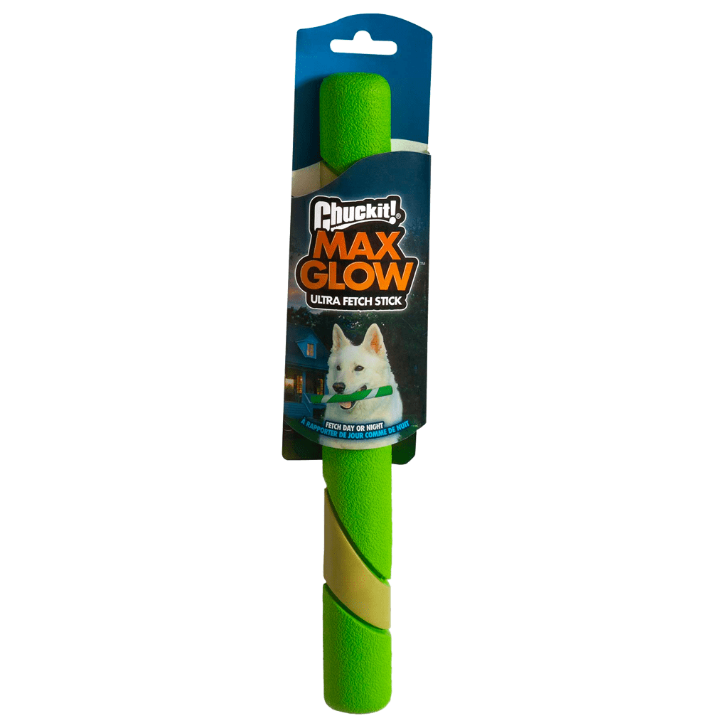 Designed specifically for interactive fetch games, the Chuckit Max Glow Ultra Fetch Stick is made of durable, high-quality material, yet gentle on dogs’ teeth. The bright colors provide and GLOW IN THE DARK material for extra visibility and the Chuckit Max Glow Ultra Fetch Stick is perfect for play and fetch.