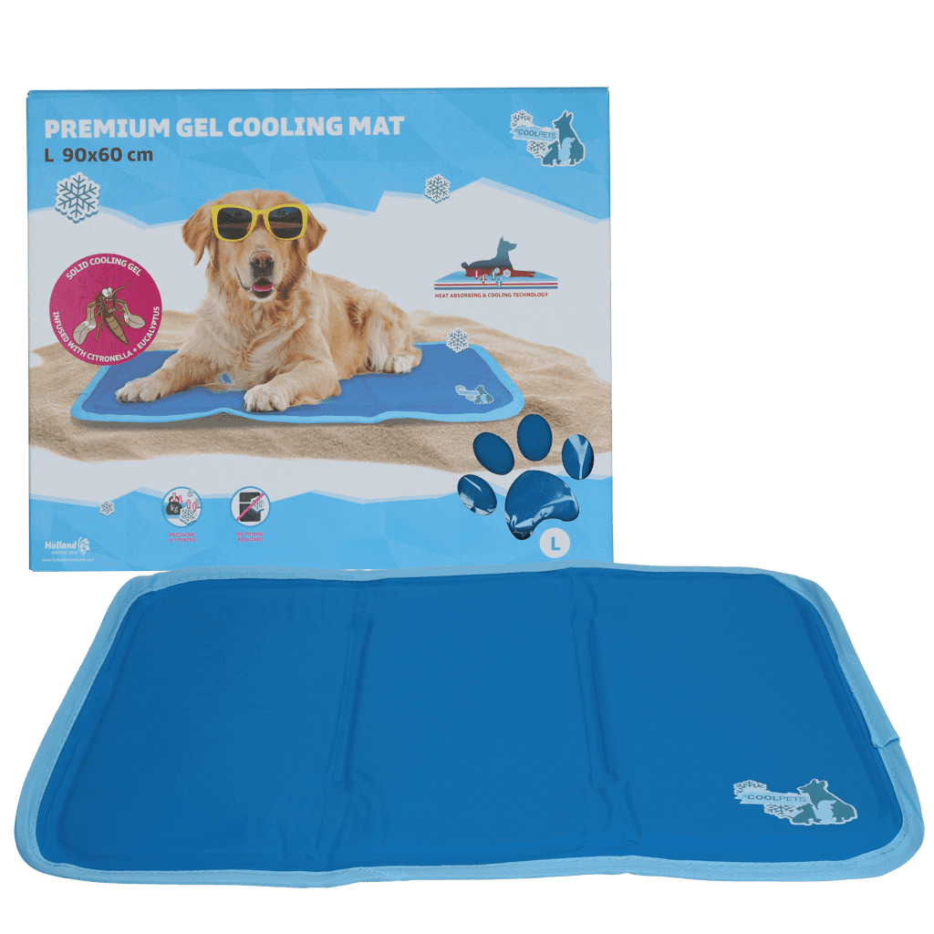 Met deze verkoelende gelmat houden honden het hoofd koel tijdens warme (zomer)dagen. De mat reguleert de lichaamstemperatuur van de hond en helpt oververhitting te voorkomen. Daarnaast is de mat geïnfuseerd met citronella en eucalyptus.
