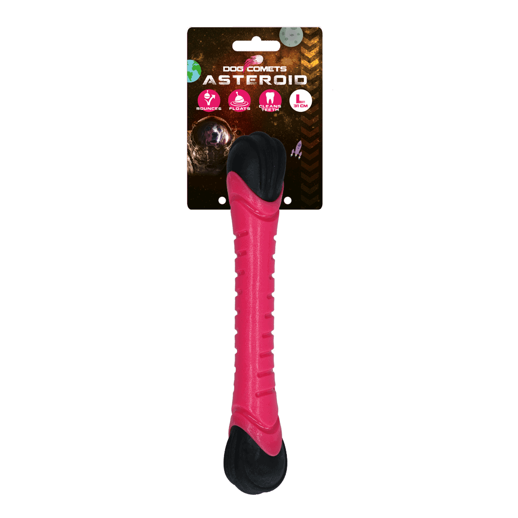 Met de Dog Comets Asteroid zorg je voor urenlang speelplezier! Houdt je hond van rennen en apporteren? Gooi de werpstok weg, laat je hond erachteraan rennen en deze weer terugbrengen. Is je hond gek op water? Gebruik de werpstok dan in en rond het water. De werpstok blijft namelijk drijven, waardoor je hond deze makkelijk terug kan vinden in het water. Vindt je hond trekspelletjes het leukst? Dankzij de schuimrubberen uiteinden heeft je hond een goede grip. De pieper in het midden zorgt voor extra veel plezier tijdens het spelen. Je hoeft niet bang te zijn dat je de werpstok kwijtraakt; door de felle kleuren valt de werpstok extra goed op.