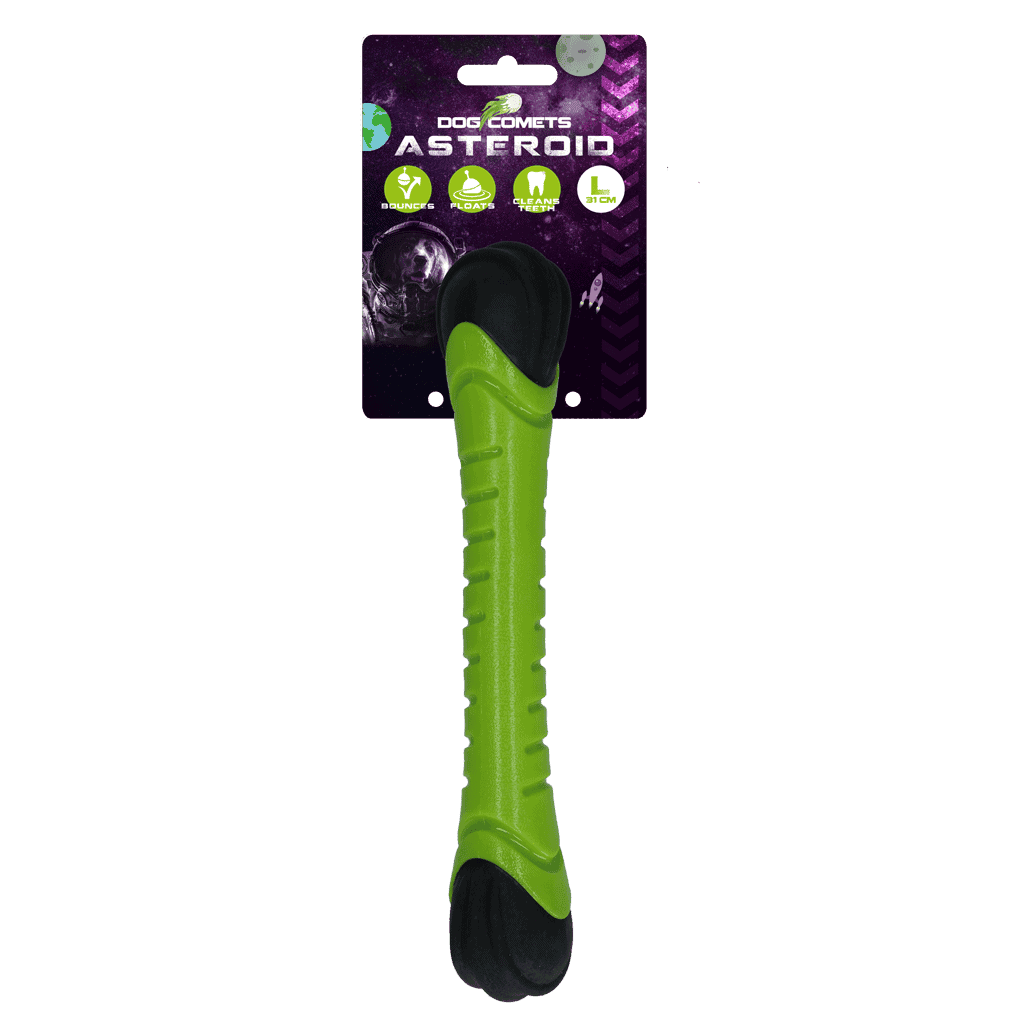 Met de Dog Comets Asteroid zorg je voor urenlang speelplezier! Houdt je hond van rennen en apporteren? Gooi de werpstok weg, laat je hond erachteraan rennen en deze weer terugbrengen. Is je hond gek op water? Gebruik de werpstok dan in en rond het water. De werpstok blijft namelijk drijven, waardoor je hond deze makkelijk terug kan vinden in het water. Vindt je hond trekspelletjes het leukst? Dankzij de schuimrubberen uiteinden heeft je hond een goede grip. De pieper in het midden zorgt voor extra veel plezier tijdens het spelen. Je hoeft niet bang te zijn dat je de werpstok kwijtraakt; door de felle kleuren valt de werpstok extra goed op.