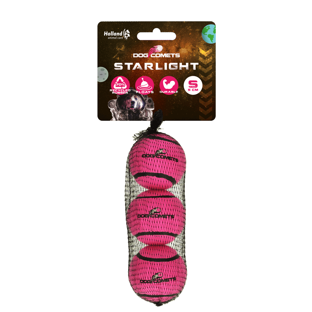Dog Comets Starlight Tennis Ball S Pink (3-pack)