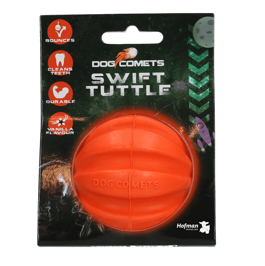 De Swift Tuttle, Halley en Hale Bopp ballen zijn vernoemd naar bekende kometen en zorgen voor maximaal apporteerplezier! Dankzij het speciale ontwerp met gleuven kan de hond gemakkelijker ademhalen wanneer hij de bal in de bek heeft. Honden kunnen het apporteren daardoor langer volhouden! Ook helpen de gleuven het gebit te reinigen en het tandvlees te masseren.