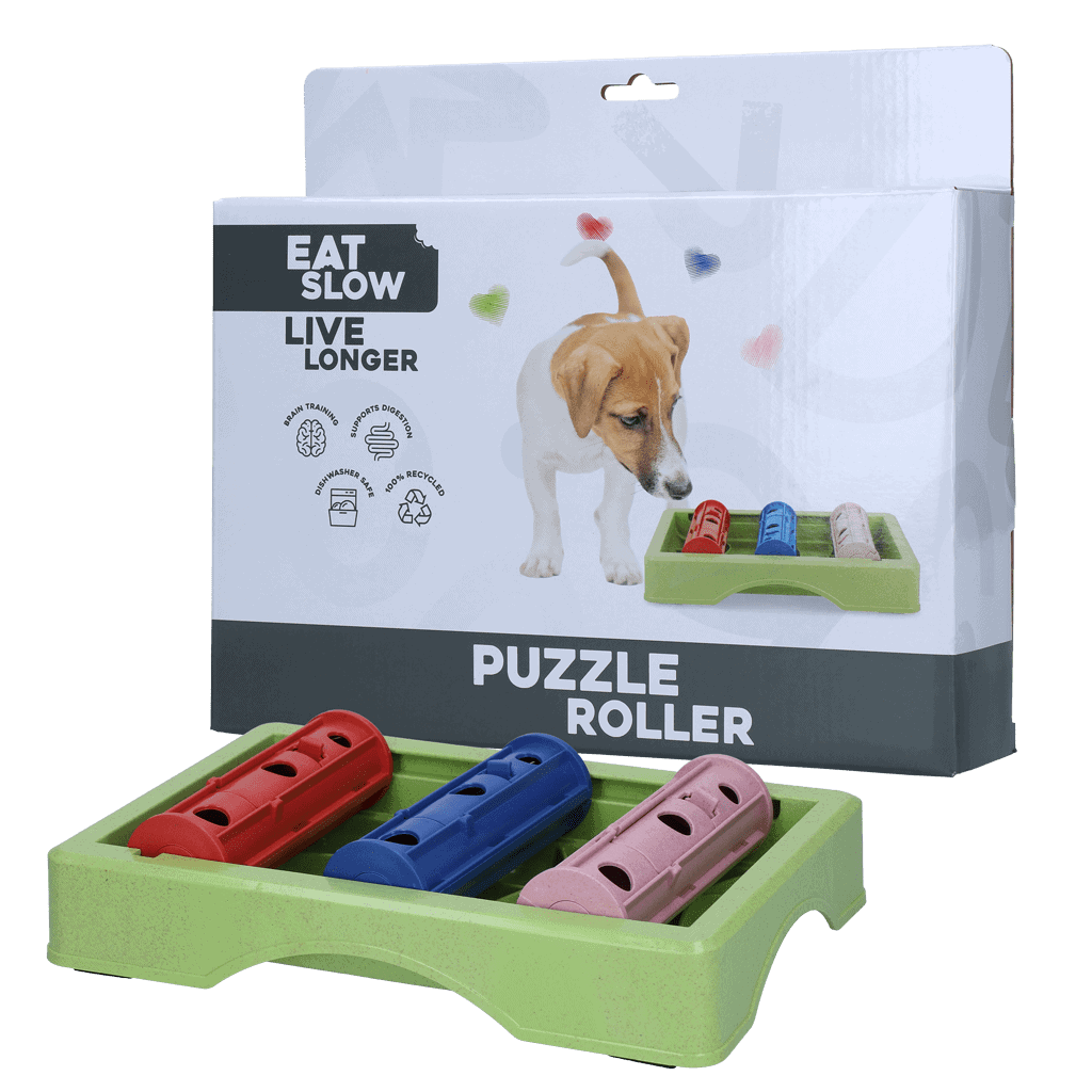 De Eat Slow Live Longer Puzzle is een leuke manier om honden bezig te houden en tegelijkertijd te belonen. Door brokjes of snacks in de puzzel te verstoppen, zal de hond zijn best moeten doen om alle lekkernijen te vinden door onderdelen te verschuiven, te draaien en te openen. Dit zorgt voor mentale en fysieke uitdaging en het kan bijdragen aan het verminderen van verveling, angst en destructief gedrag. Daarnaast kan het de band tussen baasje en hond versterken wanneer ze samen met de puzzel bezig zijn. De voerpuzzel kan ook ingezet worden als anti-schrok voerbak. De puzzel is voorzien van anti-slip voetjes en is vaatwasserbestendig.