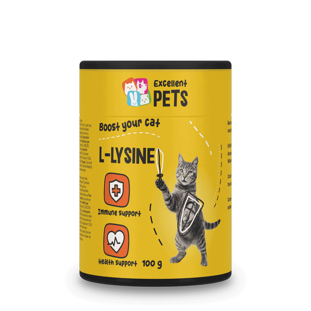 Excellent Pets L-Lysine is een aanvullend diervoeder voor katten in poedervorm. Het ondersteunt het natuurlijke immuunsysteem en het draagt bij aan de vorming van afweerstoffen.